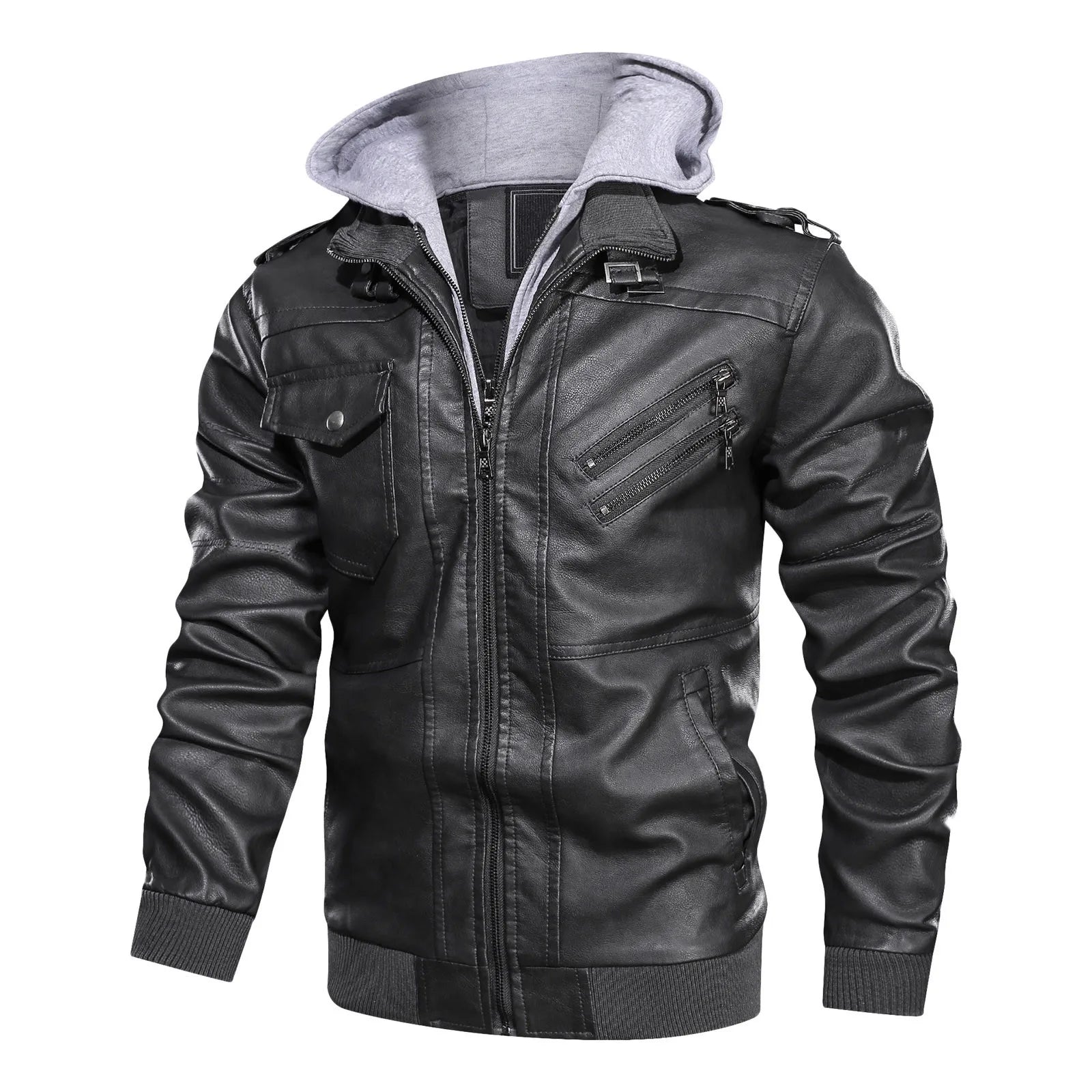 A knit hood enhances the layered style of this classic moto jacket, crafted from premium soft leather, ideal for layering on a night out.