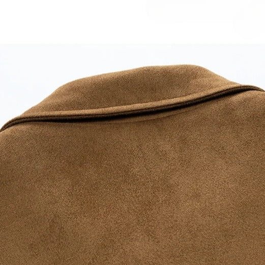 Rich suede with minimalist pocket details, this classic jacket is ideal for lightweight layering. Its comfortable fit makes it a perfect addition to your night-out ensemble.
